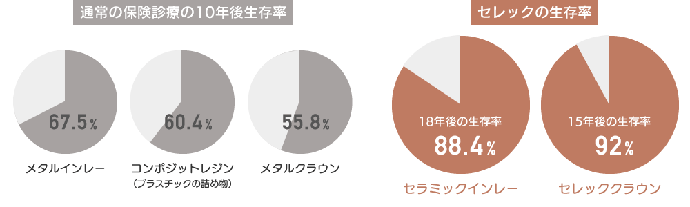 セレック治療が本当の意味で優れた治療法といえるのは、生存率(耐久性)に秘密があります。